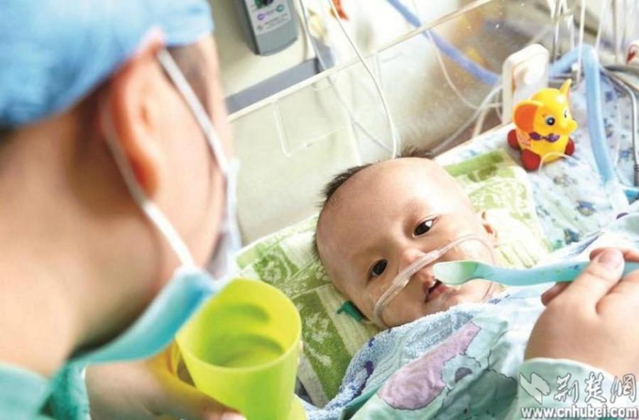 Medical staffs of a hospital in Wuhan of Hubei province check on the status of a baby boy, the country’s youngest ever recipient of a heart transplant, on Oct 14, 2014. The ten-month-old boy has survived the surgery and the heart came from a three-year-old girl. The little girl had agreed to donate all of her organs, and five patients have benefited from her contributions. [Photo: cnhubei.com]
