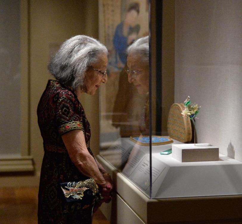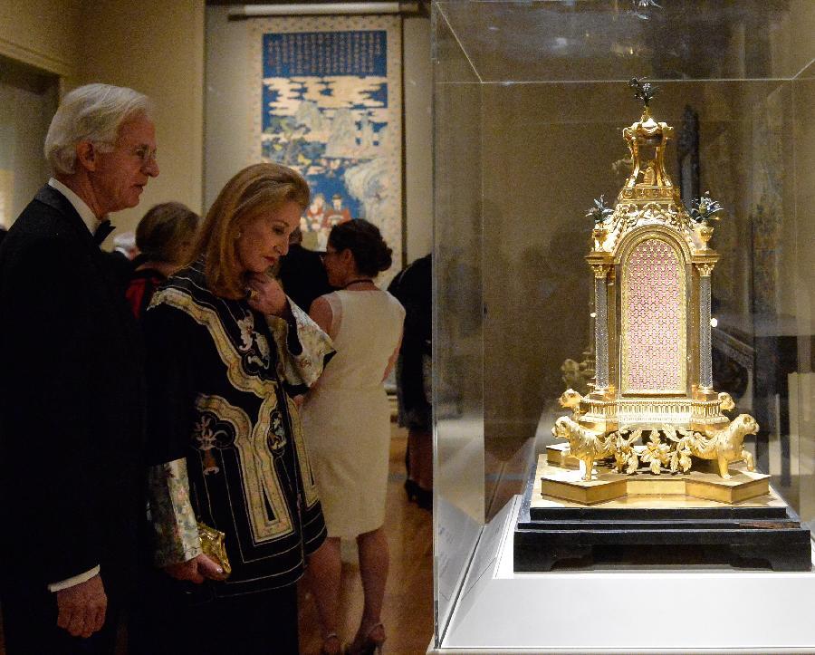 People visit the preview of an exhibition at the Virgina Museum of Fine Arts in the United States Oct 14, 2014. The exhibition "Forbidden City - Imperial Treasures from the Palace Museum, Beijing" will be open to the public from Oct 18, 2014 to Jan 11, 2015. (Xinhua/Bao Dandan)