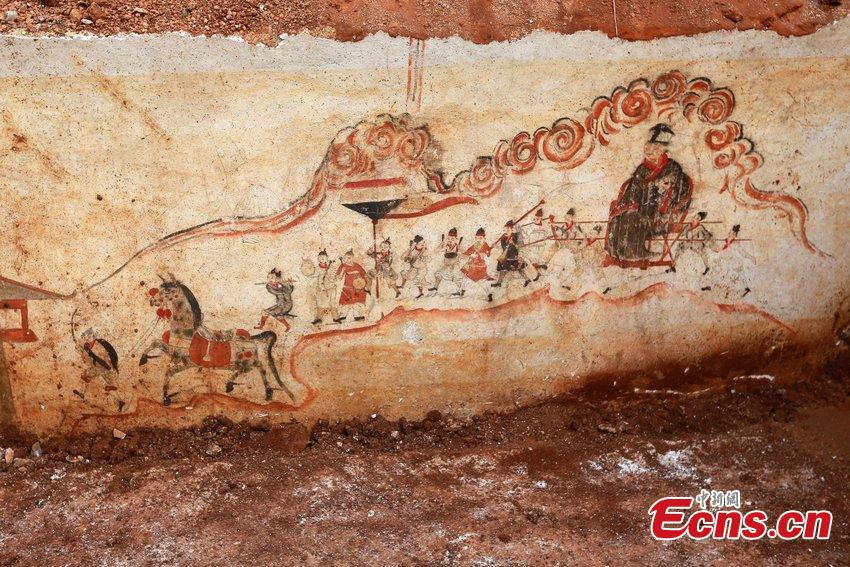 Fresco of Ming Dynasty unearthed at construction site(1/4)
