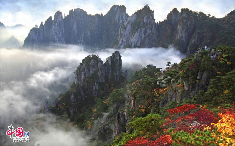 Located in eastern China's Anhui province, Mount Huangshan is often described as the "loveliest mountain in China" and was listed on both the world cultural and natural heritage lists in 1990. In September 2013, Lonely Planet included Mount Huangshan in its top 10 list of "The World's Best Places to See Autumn Colors." [China.org.cn]
