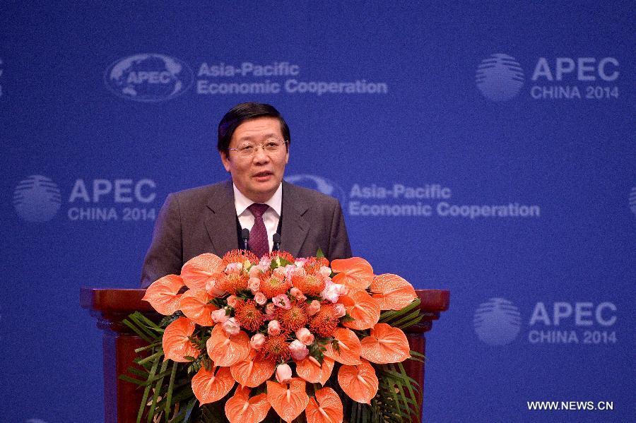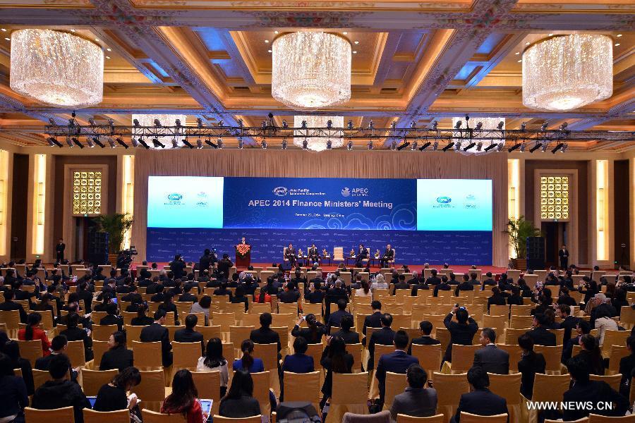 Delegates attend the APEC (Asia-Pacific Economic Cooperation) 2014 Finance Ministers' Meeting in Beijing, capital of China, Oct 22, 2014. (Xinhua/Li Xin)