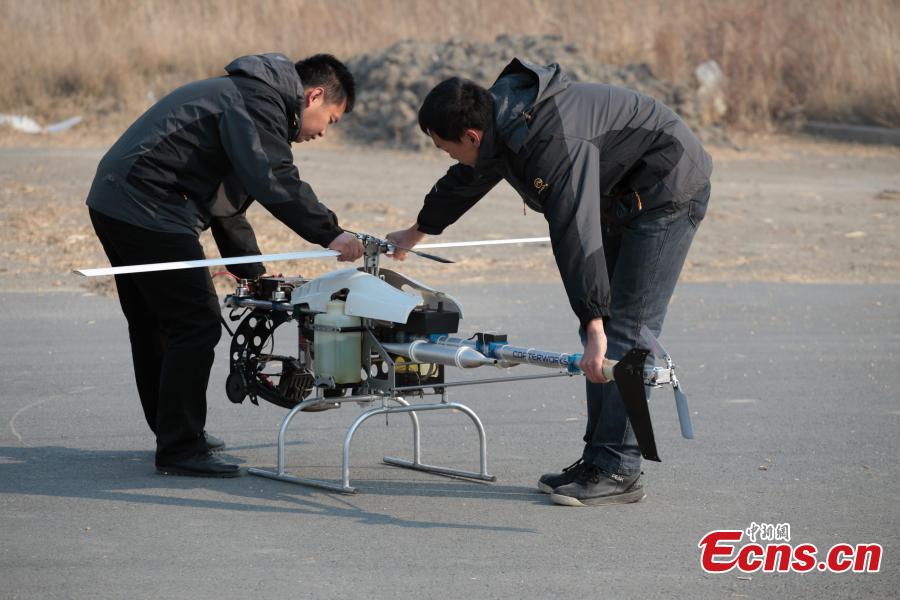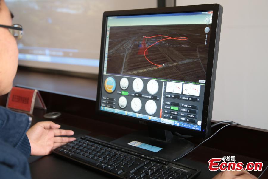 An unmanned aerial vehicle (UAV) is applied by environmental protection department to monitor and control illegal straw burning in Harbin, Heilongjiang province on October 22, 2014. Burning straw is the chief cause of the smog in north China. [Photo: China News Service/ Wang Dongliang]