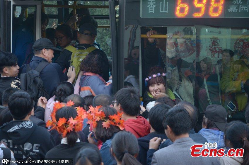 Tourists pack Fragrant Hills Park in Beijing(1/4)