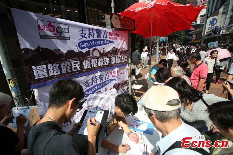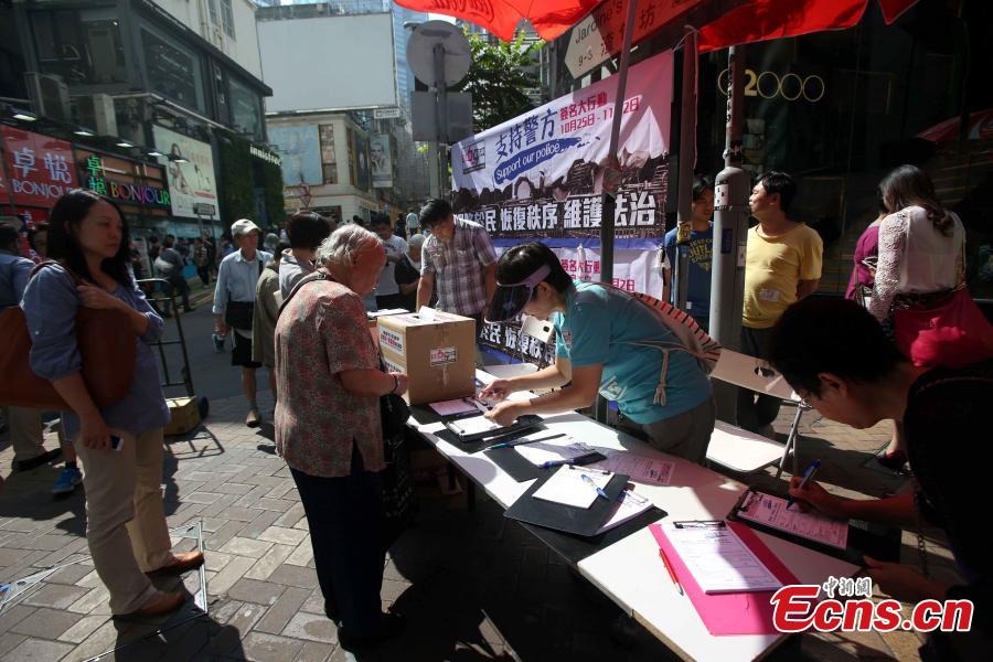 Hong Kong residents sign up for anti-Occupy Central campaign(1/2)