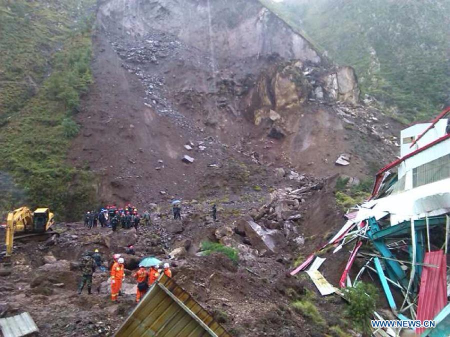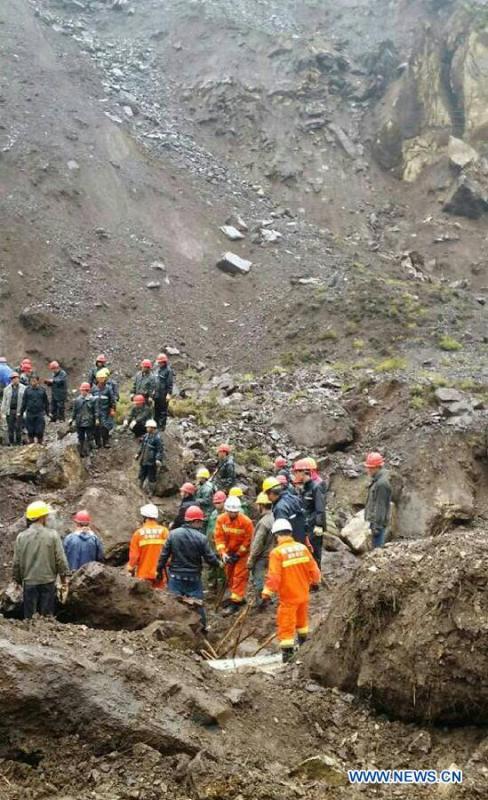 Rescuers search for buried villagers after a rain-triggered landslide in Xiaoxin Village, Dongchuan District of Kunming, capital of southwest China's Yunnan province, Oct 28, 2014. Nine people were buried in the landslide which struck the village at around 11 am on Tuesday.(Xinhua)