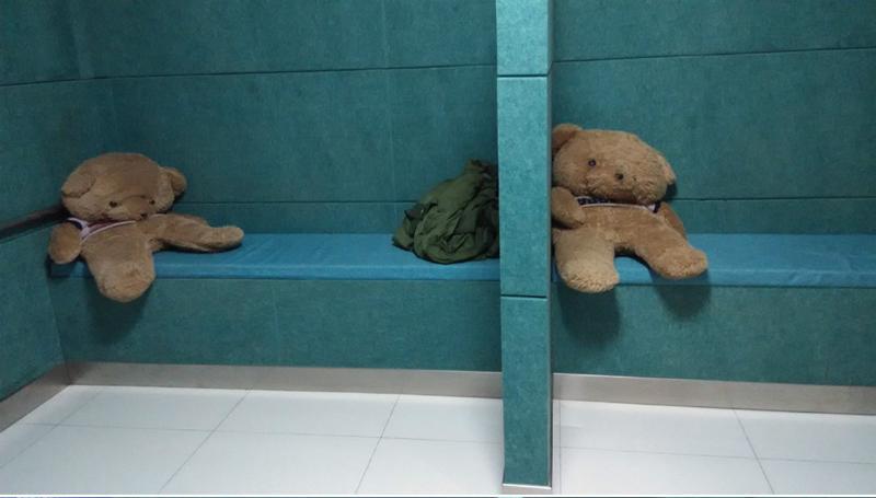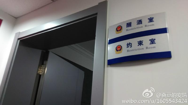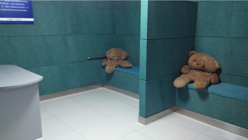 Two plush toy bears are prepared in a police cell for detained drunken drivers to “accompany” them through the night at a police station in Jinan, East China’s Shandong province, according to a report of local media of Shandong on October 29, 2014. [Photo/ Weibo account of iqilu.com]