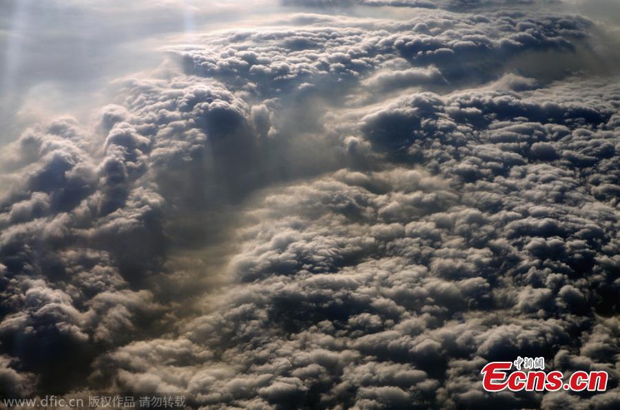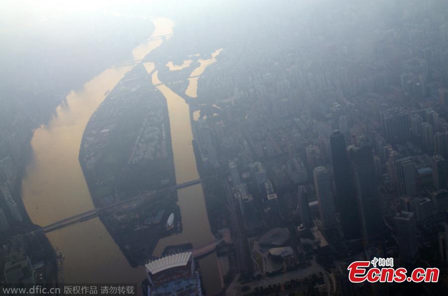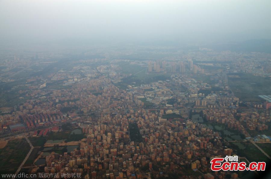 Taken on October 30, 2014 by a passenger on a plane from Beijing to Guangzhou, the photo shows a titanic cloak of smog that has settled over the capital city. [Photo/ CFP]
