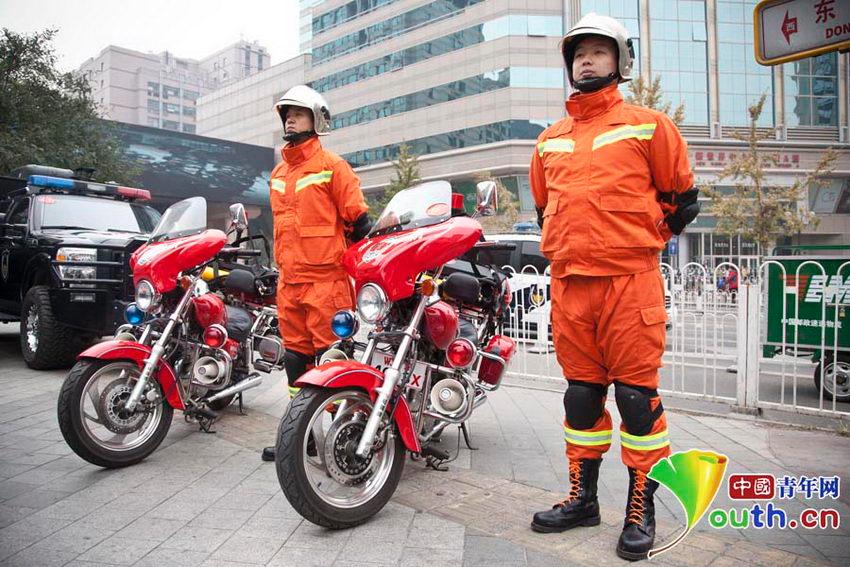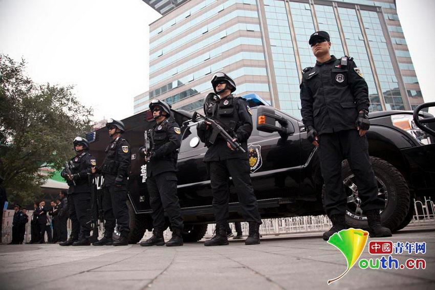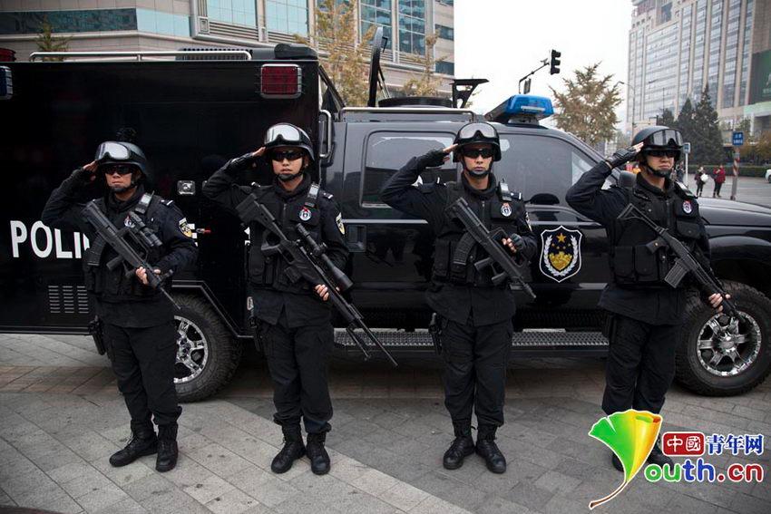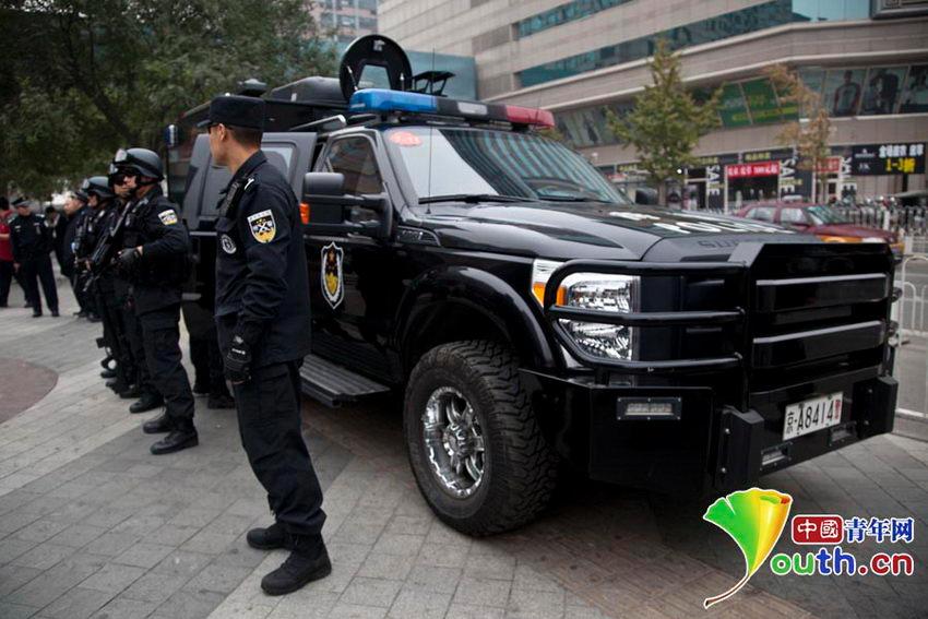Beijing police also demonstrated to the public the SWAT cars, fire motorcycles, and other specialized anti-terrorism equipment. In addition, the SWAT members showed their weapons. (youth.cn/Li Tuo)