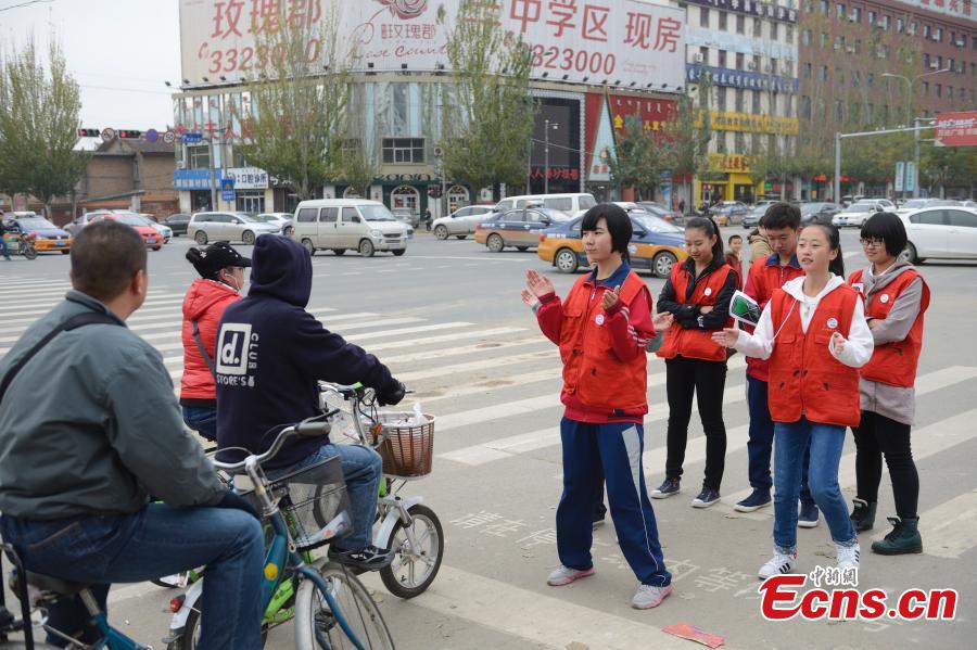 Students act to stop Chinese-style road crossing in Hohhot (1/5)