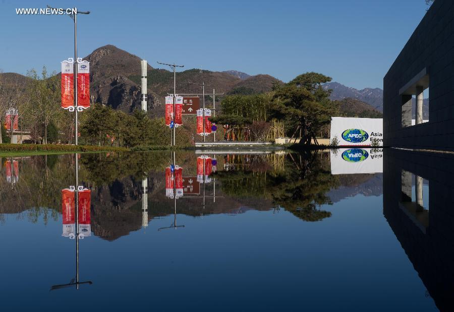 This bird eye view shows the Yanqi Lake, one of the two venues for the Asia-Pacific Economic Cooperation (APEC) meetings in Beijing, China, Oct 20, 2014 .The 2014 APEC Economic Leaders' Week will be held in Beijing from Nov 5 to 11. (Xinhua)
