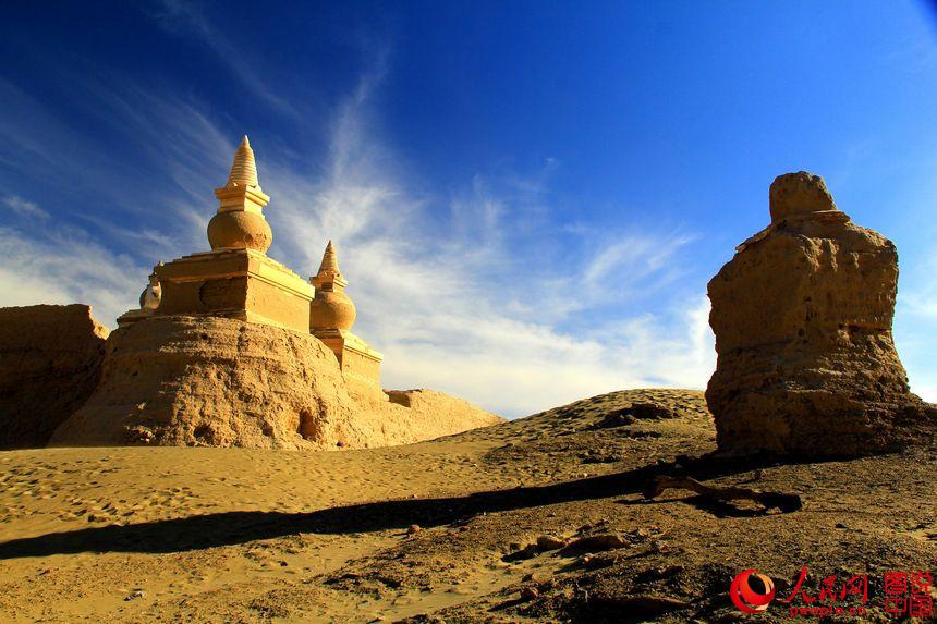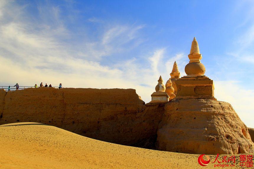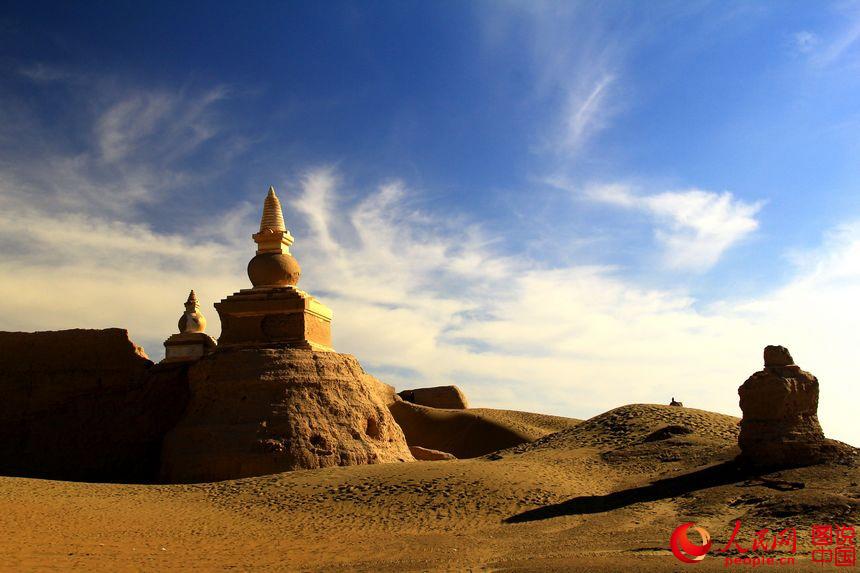 Heicheng city relic is located in Ejin Banner, north China’s Inner Mongolia Autonomous Region. It is the biggest and best-preserved ancient city relic along the Silk Road. The landmark building of the city is a 13-meter-high pagoda. Although part of the city has been covered by the sand, the city layout is still neat. (Photo source: people.cn)