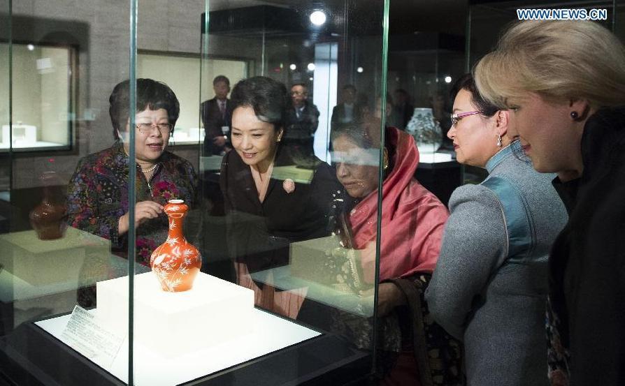 Peng Liyuan hosts museum tour for foreign leaders' wives(1/5)