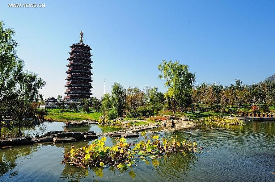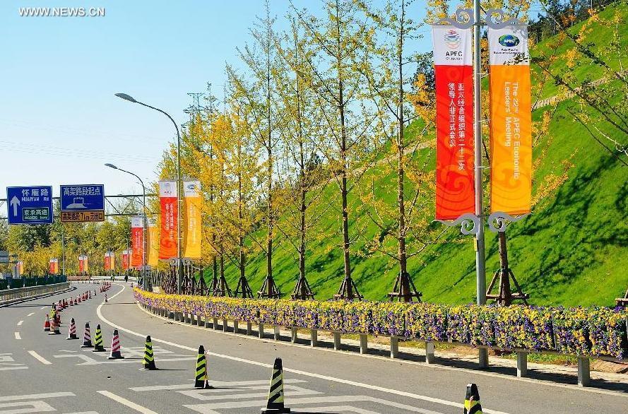 This undated photo shows the scenery near Yanqi Lake, one of the two venues for the Asia-Pacific Economic Cooperation (APEC) meetings in Beijing, China. (Xinhua/Li Wanli)(wjq)
