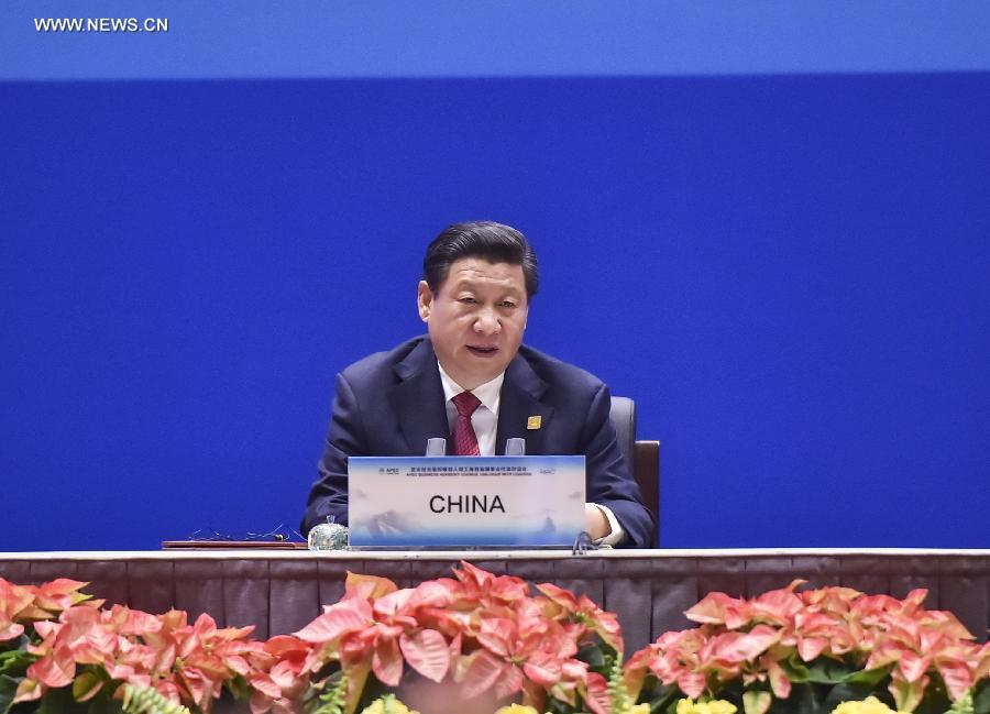 Chinese President Xi Jinping addresses the APEC Business Advisory Council Dialogue With Leaders in Beijing, China, Nov. 10, 2014. (Xinhua/Li Tao)