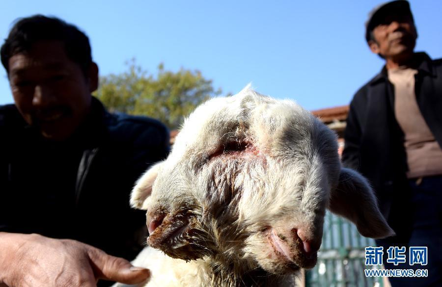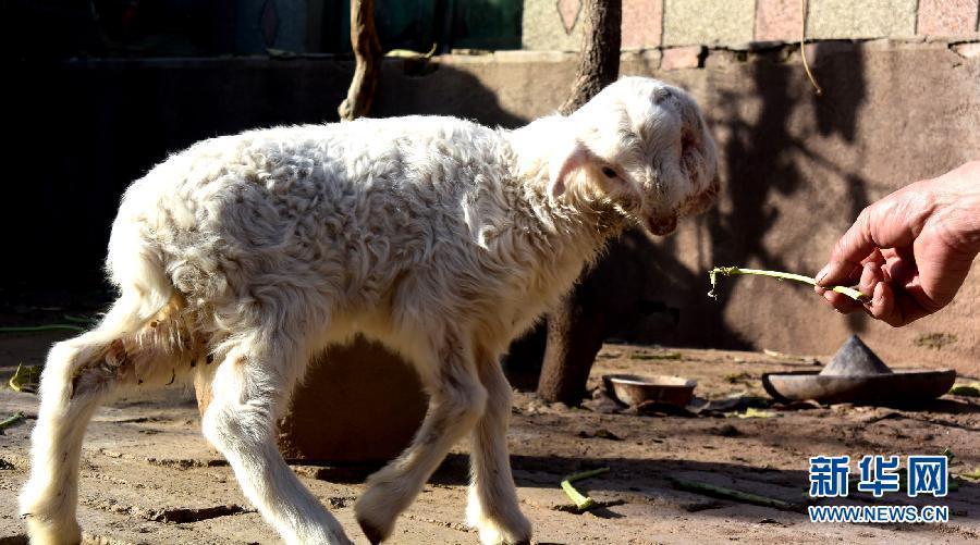 Farmers show a goat with two heads and three eyes in a village of East China’s Shandong province on November 12, 2014. The lamb is 40cm long and 30cm tall. It grows healthily under care of its owner. [Photo/ Xinhua]