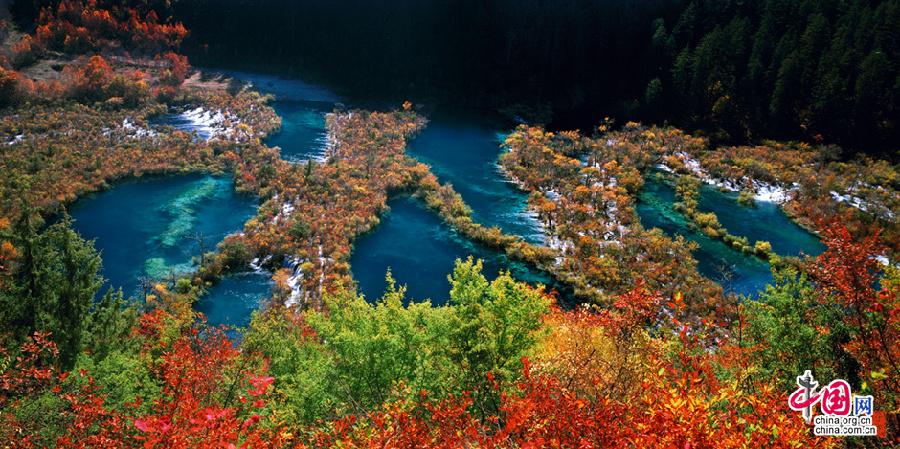 Scenic Jiuzhaigou, tucked away in the depth of the mountains in northern Sichuan province is indeed one of nature's most extravagant splendors anywhere in the world and is the crowning glory of the province. With many lakes, waterfalls and a rich variety of endangered plants and species of animals, it was recognized as a UNESCO World Heritage Site in 1992. [China.org.cn]
