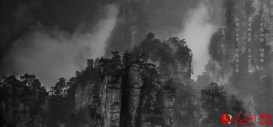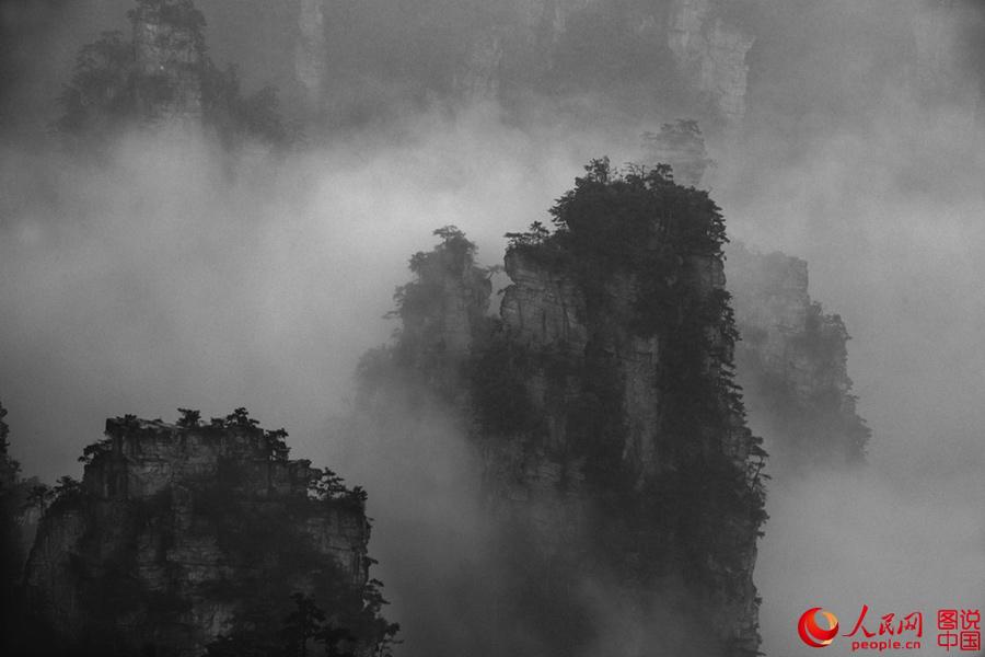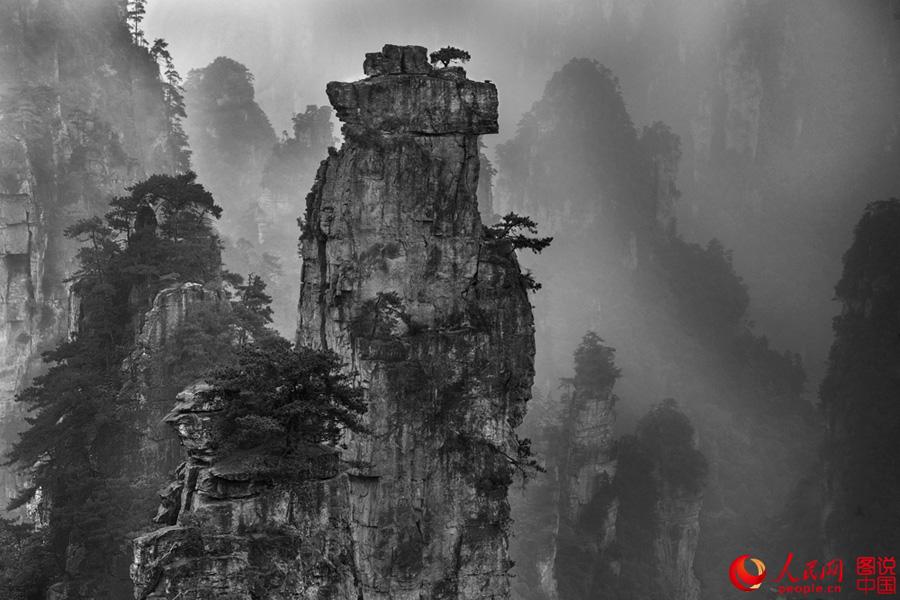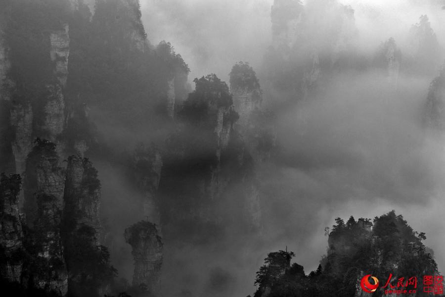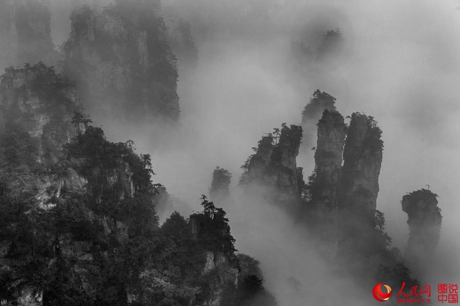 Located in northwest Hunan province, Zhangjiajie National Forest Park is a famous tourist attraction. The unique landscape is like a Chinese ink painting in black and white. (Photo source: people.cn)