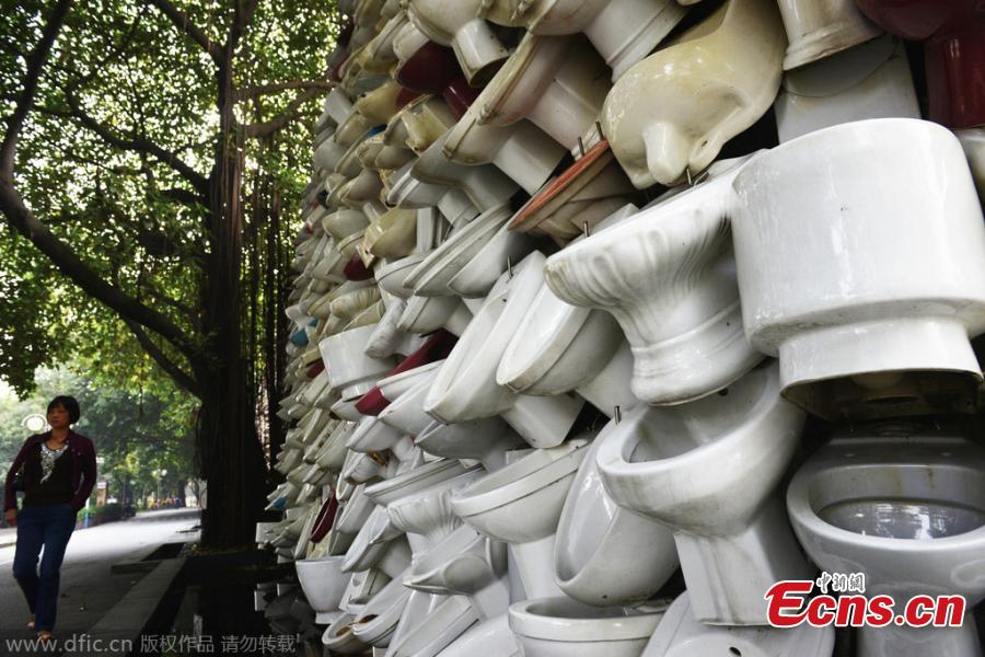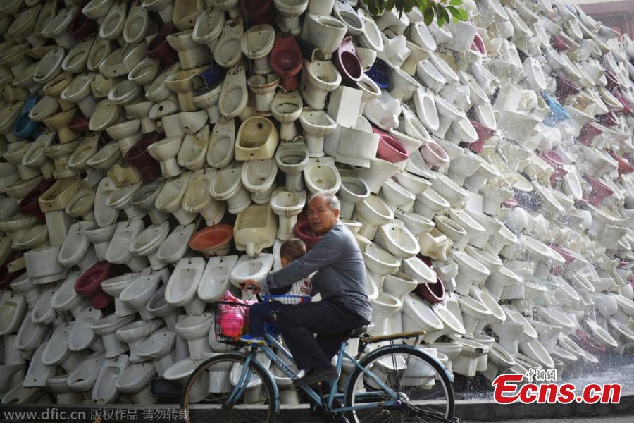 'Toilet waterfall' shown as public art in Foshan(1/3)