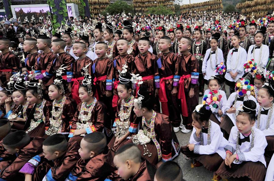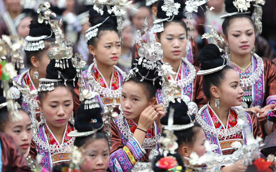 A girl from the Dong ethnic group prepares for a performance in Congjiang, Guizhou province, on Nov 28. [PHOTO BY TIAN WEITAO/ FOR CHINA DAILY]
