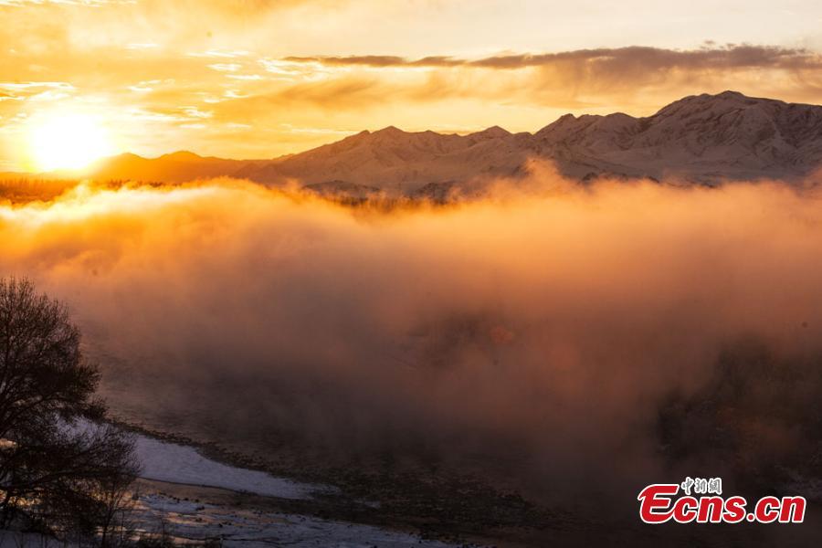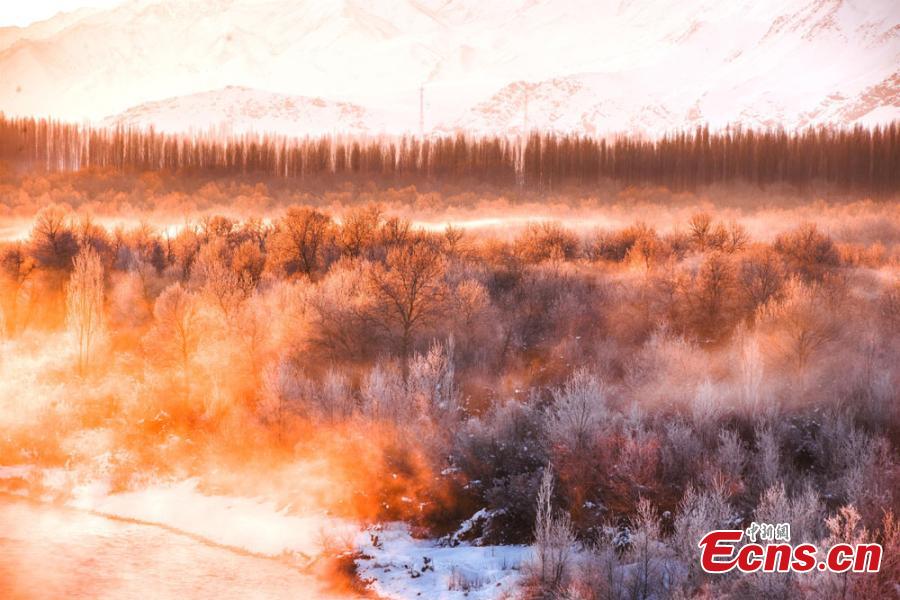 With the mist still lingering around, part of the secondary forest sparkles in winter sunshine at the Kashgar River Valley in Nilka county, Northwest China’s Xinjiang Uyghur autonomous region, Dec 1, 2014. The secondary forest in Nilka, the largest and best-reserved in Asia, covers an area of 210,000 hectares and extends 100 kilometers. The Kashgar River Valley is home to a great diversity of animals and plants. [Photo/Chen Hualin]