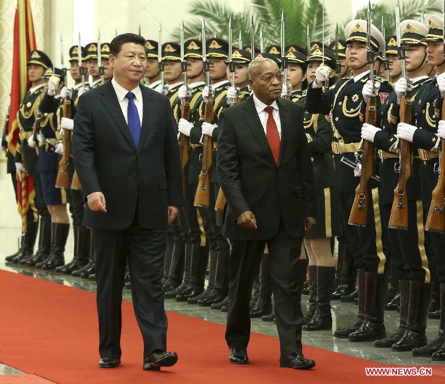 Chinese President Xi Jinping (L) holds a welcoming ceremony for visiting South African President Jacob Zuma before their talks in Beijing, capital of China, Dec 4, 2014. (Xinhua/Pang Xinglei)