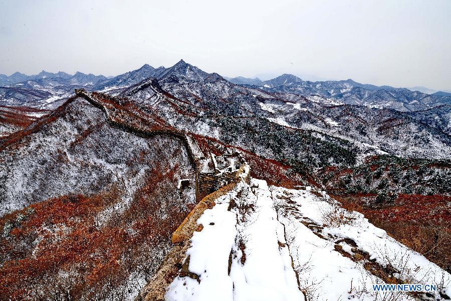 Dongjiakou Great Wall covered by snow in N China(1/4)