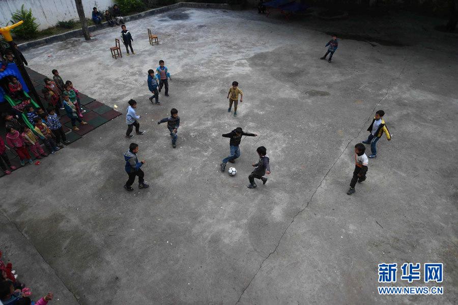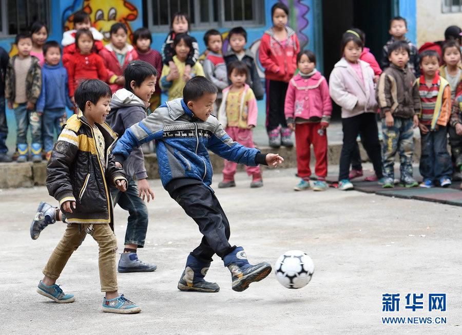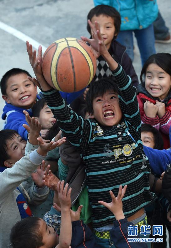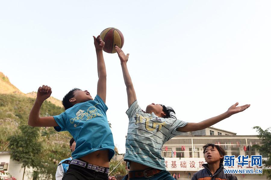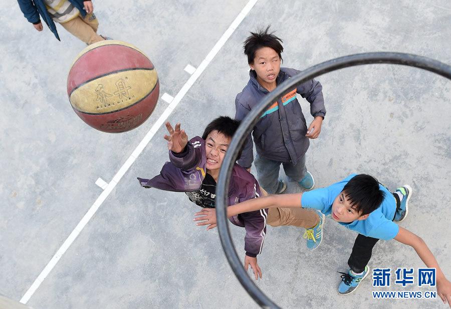 Students play basketball on the playground in a village in Dahua Yao Autonomous County in south China's Guangxi on Dec 8, 2014. (Xinhua News Agency/Zhang Ailin)