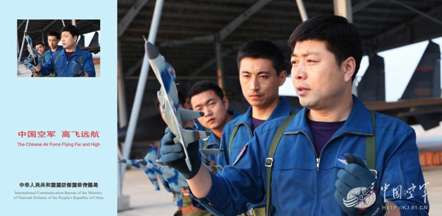 A set of bilingual postcards "The Chinese Air Force flying Far and High" was released recently by China's Ministry of National Defense. This set of postcards shows the working scenes of pilots, ground crew and researchers of the Chinese Air Force. (Photo source: KJ.81.cn)