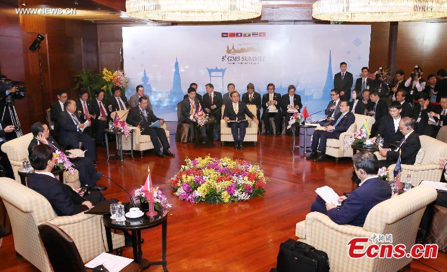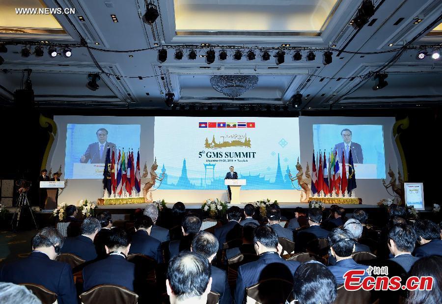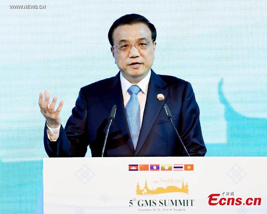 Chinese Premier Li Keqiang delivers a speech at the opening ceremony of the fifth summit of the Greater Mekong Subregion (GMS) Economic Cooperation in Bangkok, Thailand, Dec. 20, 2014. (Xinhua/Rao Aimin)