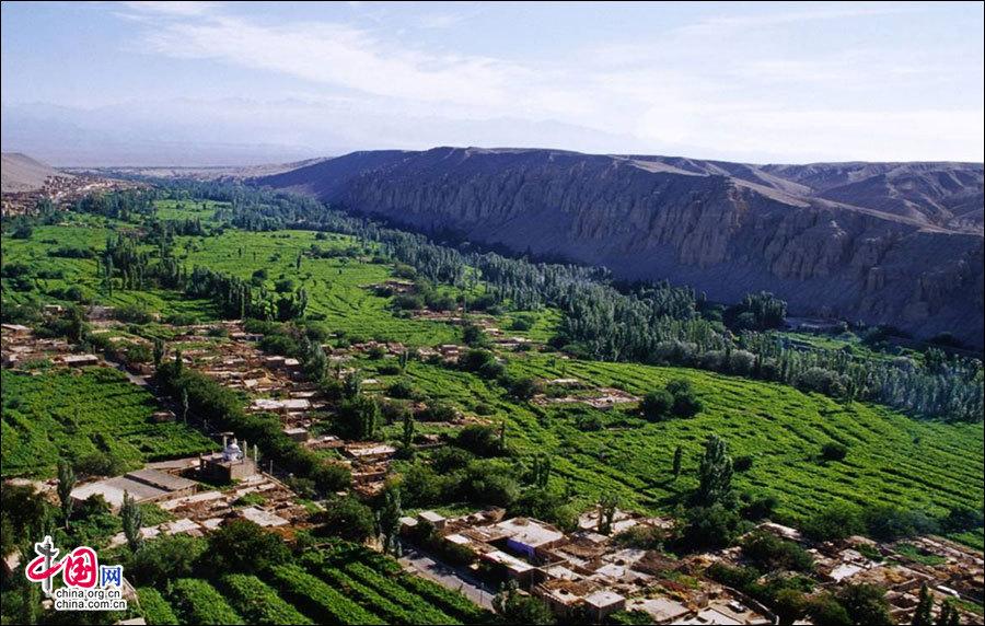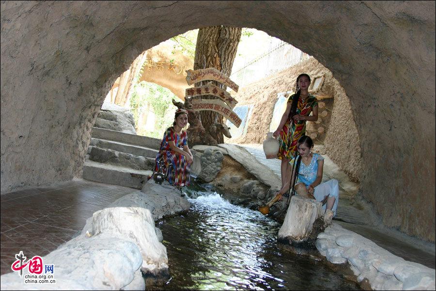 Turpan has long been the center of a fertile oasis at a basin of the central Xinjiang. The extreme heat and dryness of the summer allow the land to produce great amounts of high-quality fruit. There is a well-known folk song: "Turpan's grapes are ripe; Anarhan's heart is ecstatic…" Turpan is famous for its fruits, especially grapes, and the best place to enjoy the grapes is the Grape Valley.