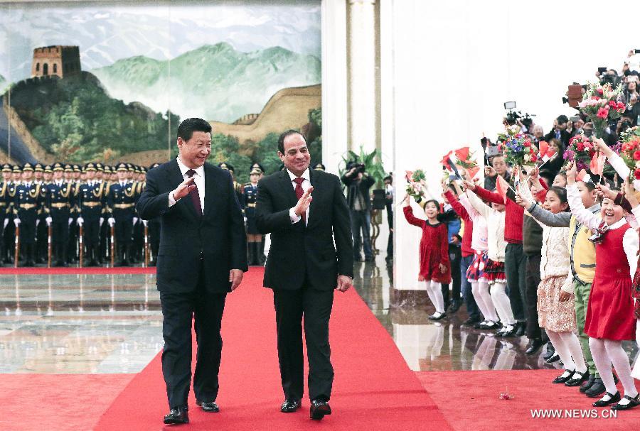 Chinese President Xi Jinping (L front) holds a welcoming ceremony for visiting Egyptian President Abdel Fattah al-Sisi (R front) before their talks in Beijing, capital of China, Dec 23, 2014. (Xinhua/Liu Weibing)