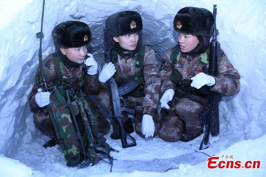 Female soldiers brave extreme cold in training(1/4)