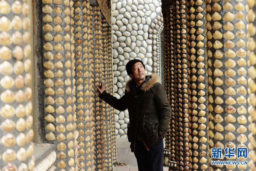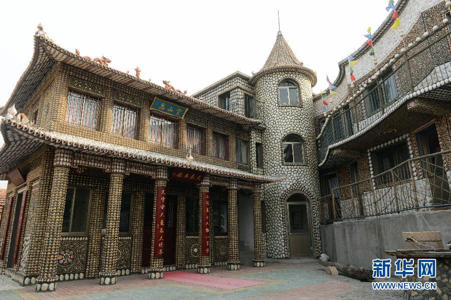 A house is covered in seashells on December 23, 2014 on Lingshan Island in Qingdao, East China’s Shandong province. Xiao Yongsheng collected more than one million shells of 500 types to renovate the building that had become an exhibition center with over 1,000 items showcaing local culture. [Photo: Xinhua/Yu Fangping]