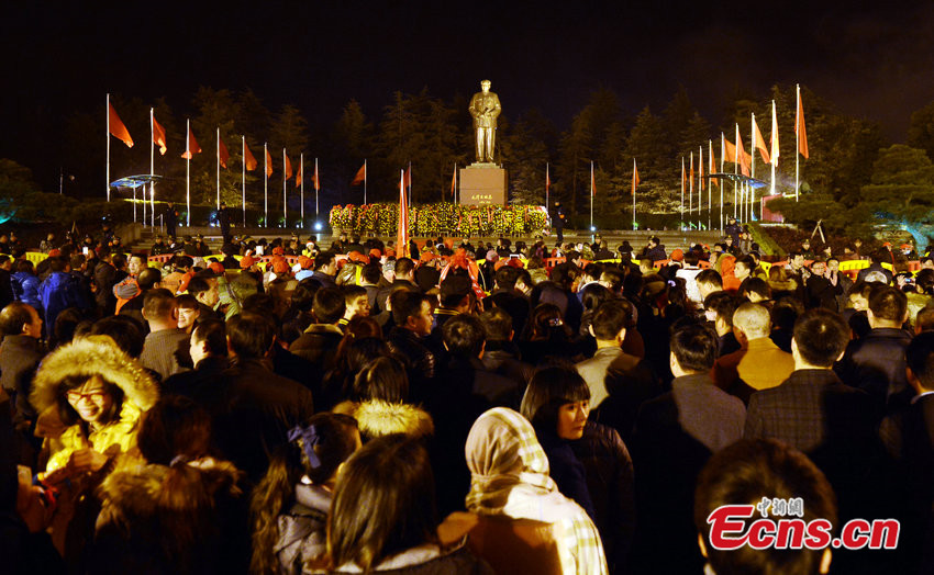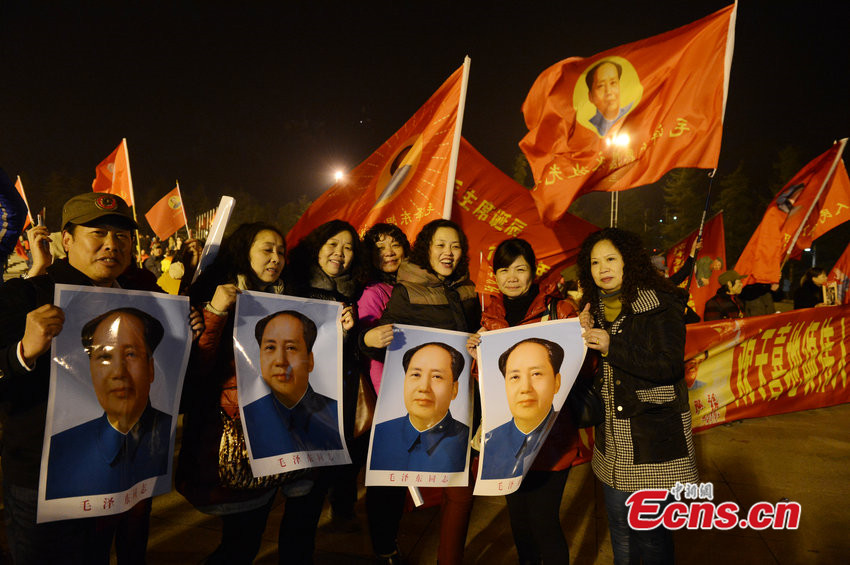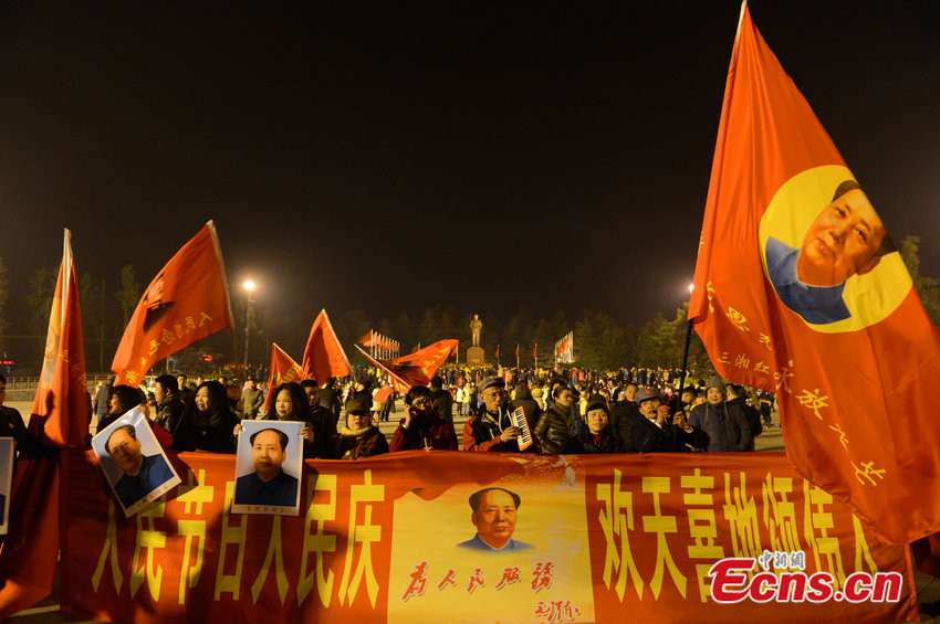 Locals joined by admirers from across the country mark the 121st birth anniversary of Mao Zedong in a square in Shaoshan, Central China's Hunan province, Dec 26, 2014. More than 100,000 people got together to remember the former leader in his hometown. [Photo: CFP]