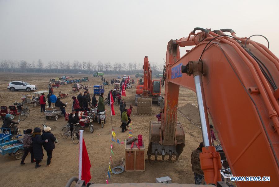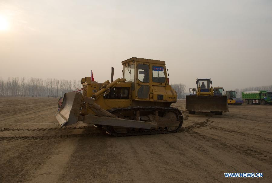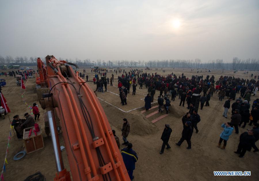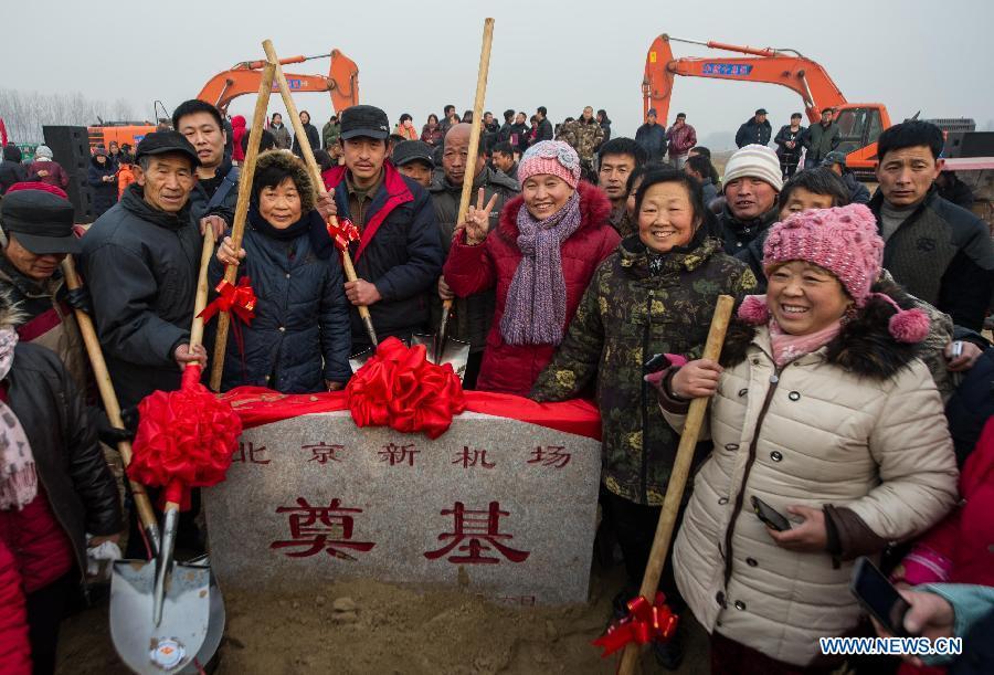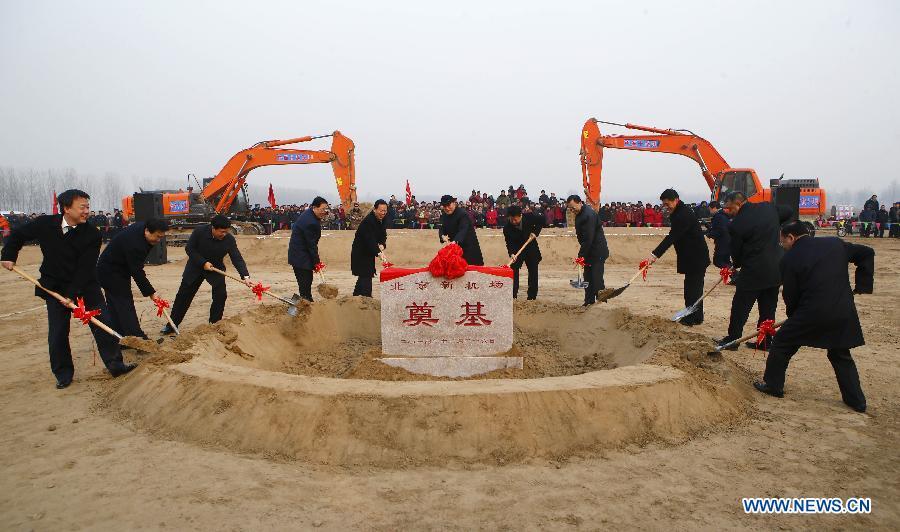 The ground breaking ceremony of Beijing's new airport is held in the Daxing District of Beijing, capital of China, Dec 26, 2014. The airport is designed to handle 72 million passengers, 2 million tonnes of cargo and mail, and 620,000 flights in 2025. (Xinhua/Luo Xiaoguang)