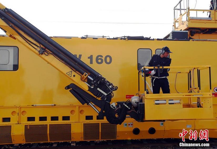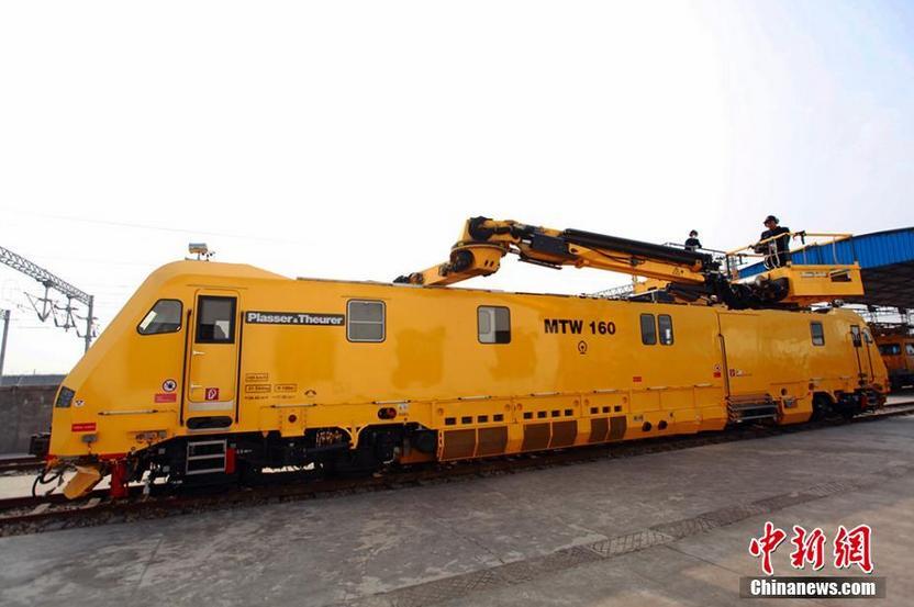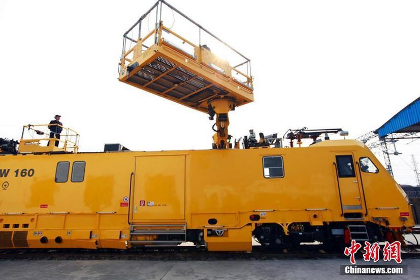China's first overhead line service vehicle is unveiled. The equipment has a top speed of 160 km/h and is the most advanced one of its kind. It is also called the 'bullet train ambulance'. [Hu Zhiqiang/ Chinanews.com]