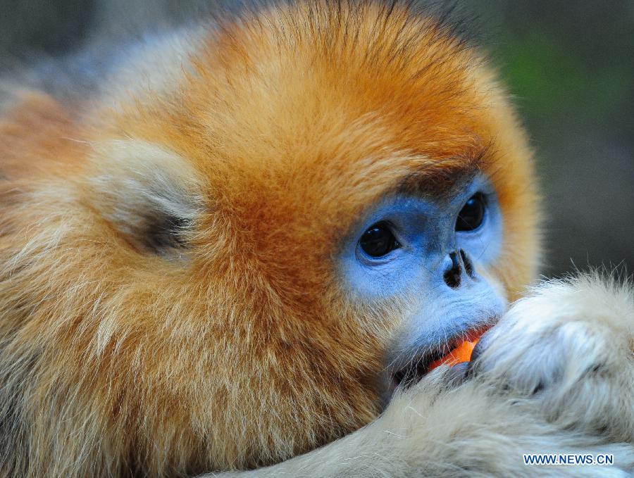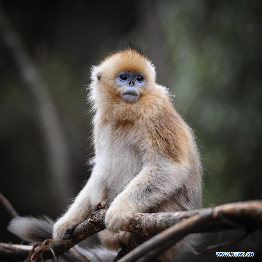 Photo taken on Dec 26, 2014 shows golden monkeys at the Foping Giant Panda Valley in Foping County, northwest China's Shaanxi Province. (Xinhua/Ding Haitao)