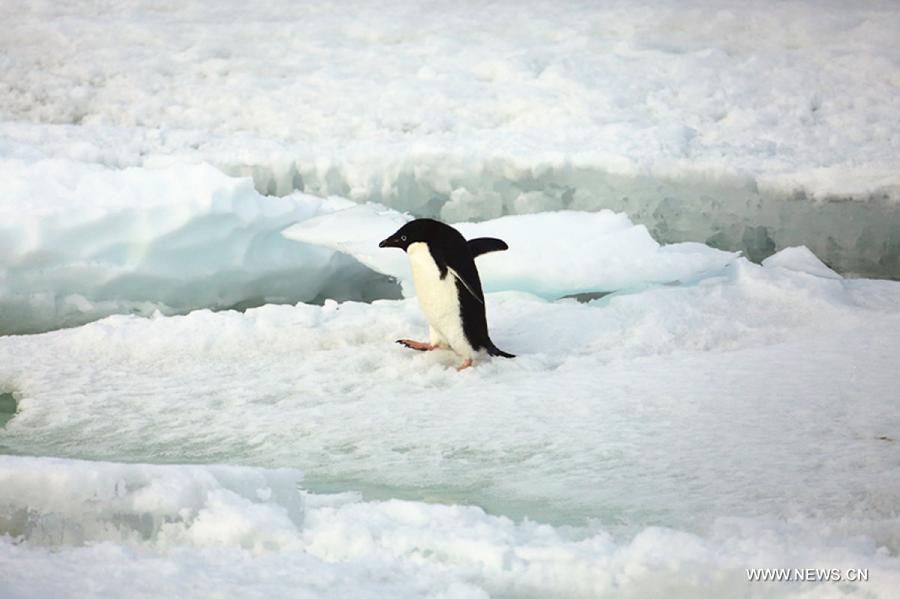 Photo taken on Dec 26, 2014 shows penguins on the ice near China's Zhongshan Antarctic Station in Antarctica. (Xinhua/Bai Yang)
