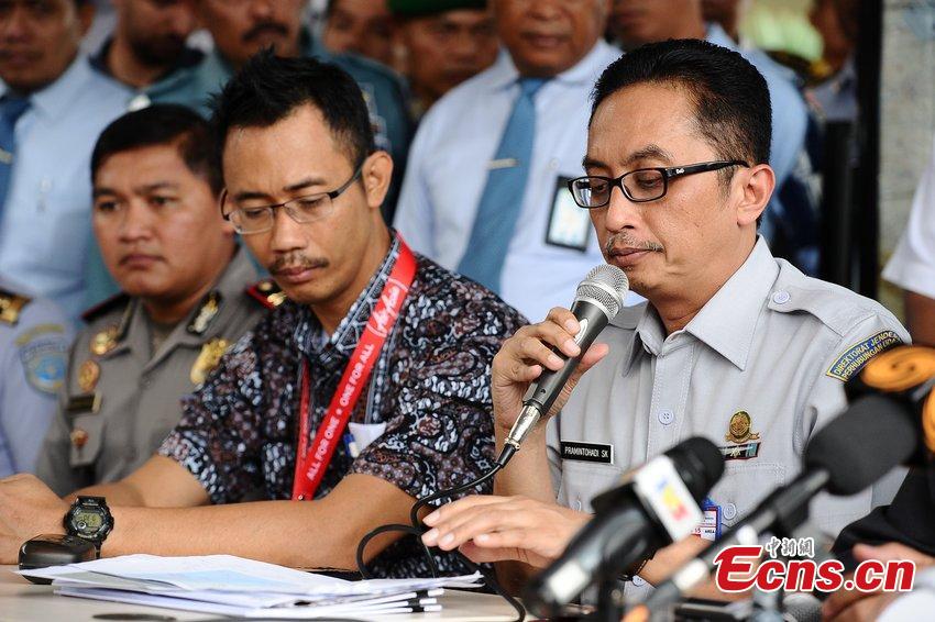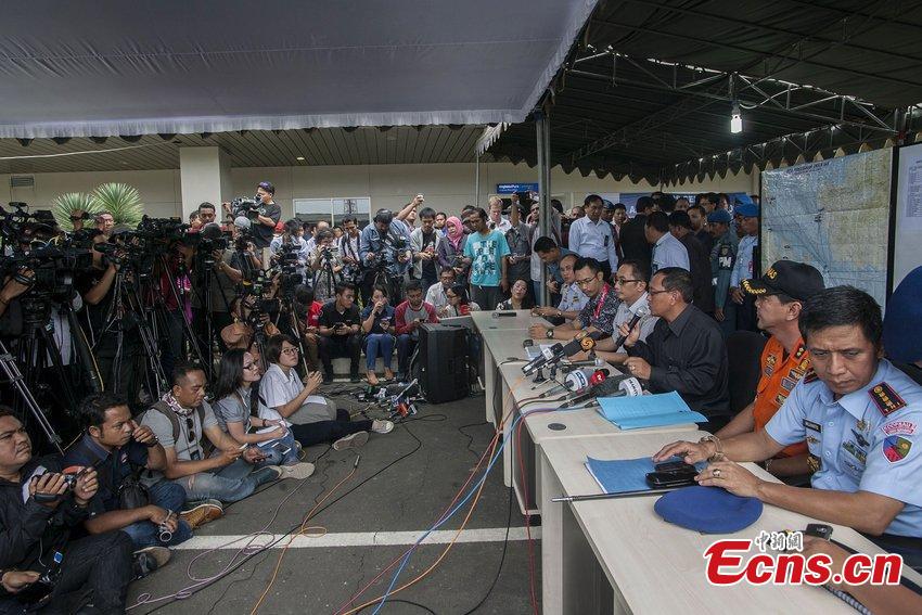An official of Indonesia's National Search and Rescue Agency says on Monday that the AirAsia plane which vanished on Sunday with 162 people on board en route from Indonesia to Singapore is likely at the bottom of the sea. The information was released by officials of the search and rescue team at a press conference on Monday, December 29, 2014. [Photo/ CFP]