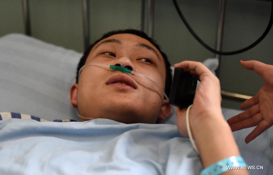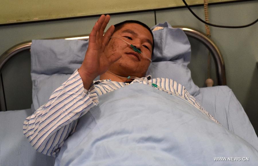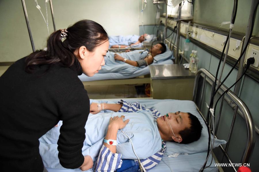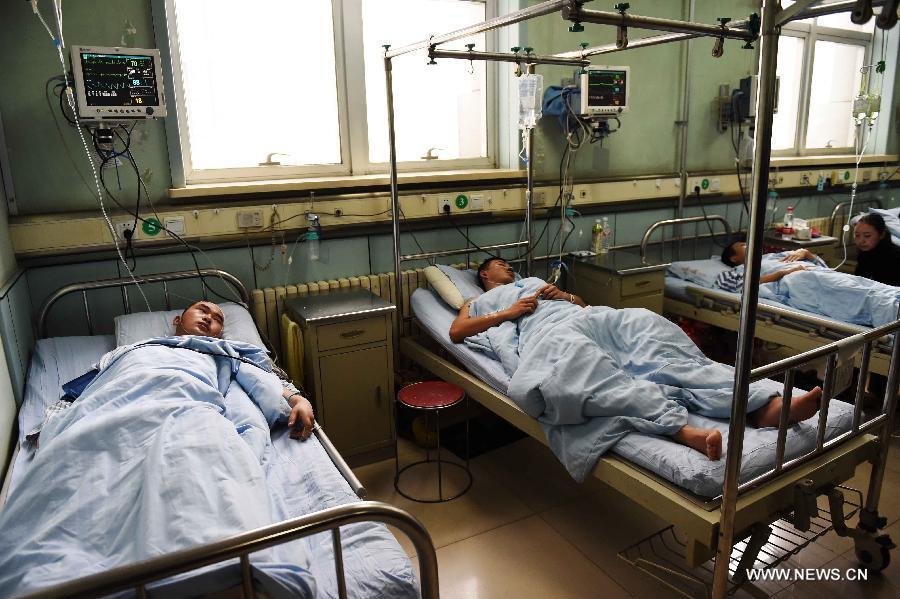 Firefighters injured in warehouse blaze receive treatment in Harbin(1/8)