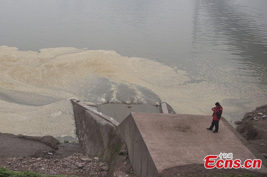 Polluted water discharged from a septic tank flows into the Yangtze River in Southwest China’s Chongqing municipality, Jan 2, 2015. About 50 meters upstream is a water collection site of Chongqing Water Supply Co., Ltd. Residents blamed the polluter irresponsible and called for an investigation into the case, which also became a hot topic on Twitter-like Sina Weibo. [Photo/CFP]