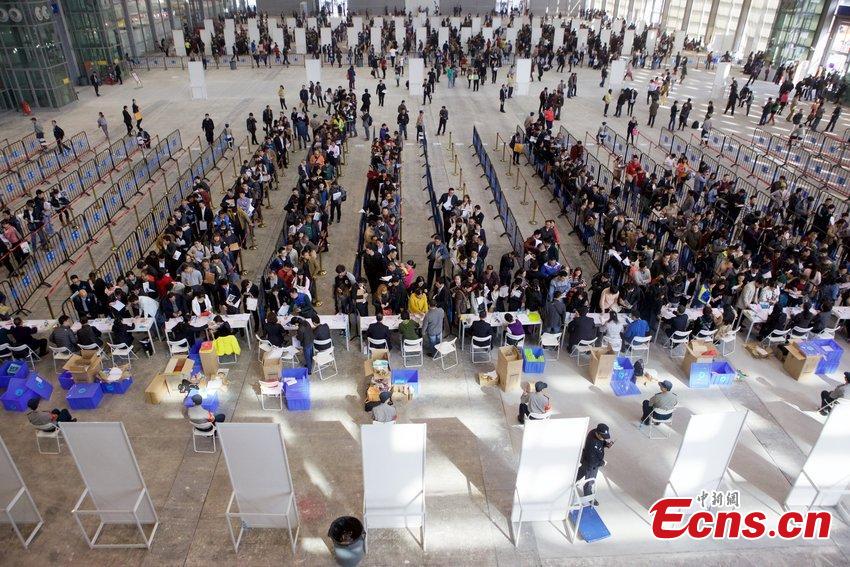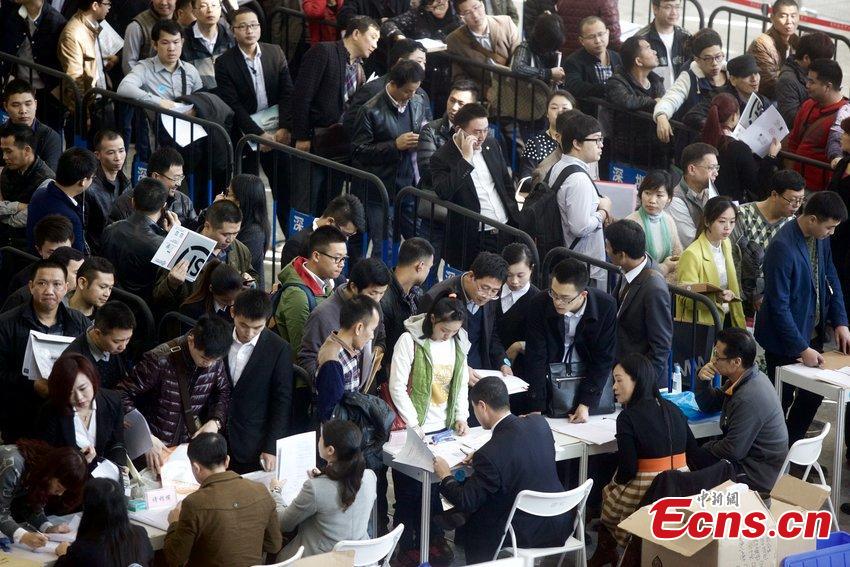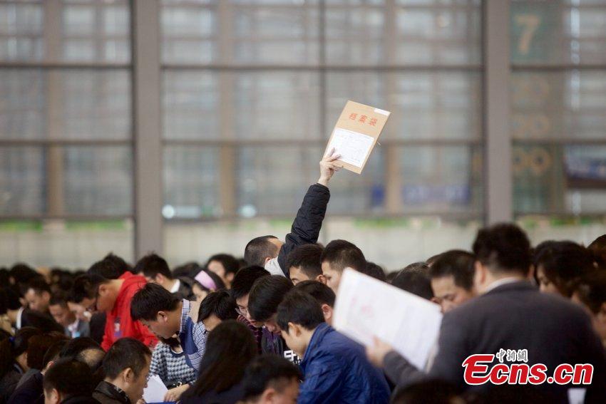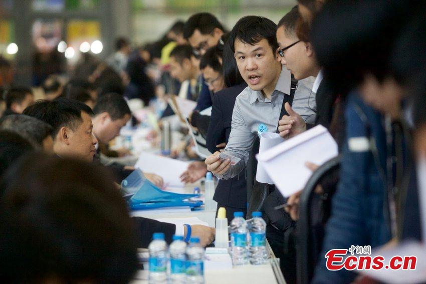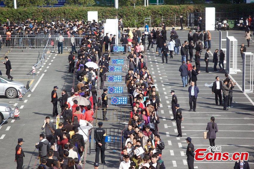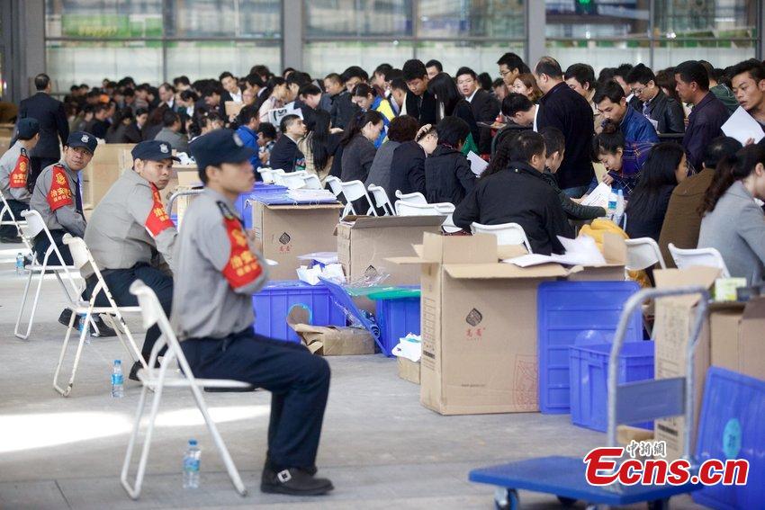 Car purchasers and dealers queue up to get documents notarized at an exhibition center in Shenzhen, South China’s Guangdong province, Jan 5, 2015. Shenzhen, which borders Hong Kong, has joined other seven cities including Beijing and Shanghai to introduce a car purchasing restriction. The policy requires prospective buyers to acquire new car plates by lottery or auction amid efforts to tackle congestion and air pollution. Car deals made before the policy went into force at 6 p.m. on Dec 29, 2014 also need to be notarized in order to get plates. There are more than 3.1 million vehicles in Shenzhen and four million are expected in 2016, which will prolong the average evening traffic commute from 55 minutes in 2014 to 92 minutes in 2016, according to a municipal government statement. [Photo/CFP]