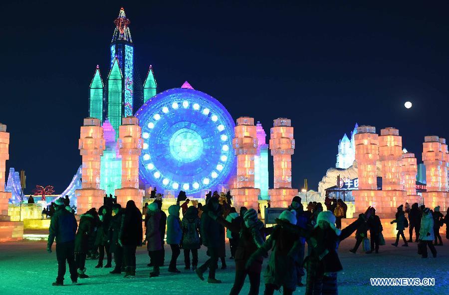 Tourists visit the Ice and Snow World of Harbin, capital of northeast China's Heilongjiang province, Jan 5, 2015. The 31th China (Harbin) International Ice and Snow Festival kicked off here Monday. (Xinhua/Wang Jianwei)