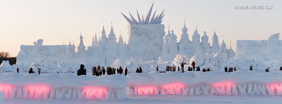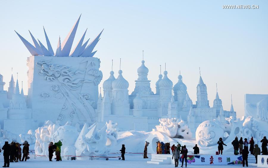Tourists visit 27th Intl Snow Sculpture Art Expo in China's Harbin(1/6)