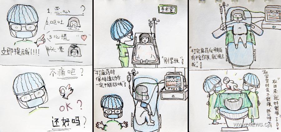 Cartoon pictures bridge anesthetist and expectant deaf-mute mother(1/7)