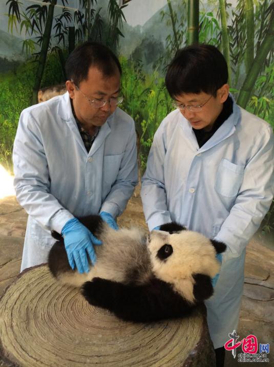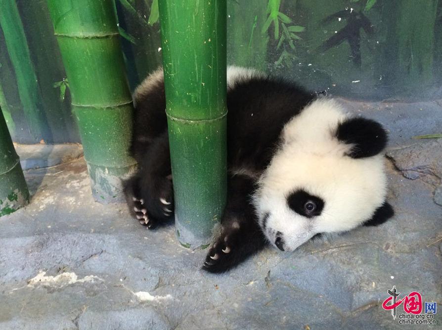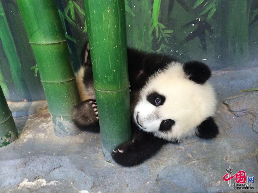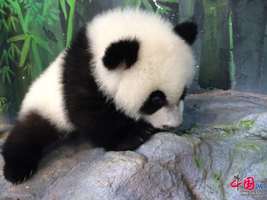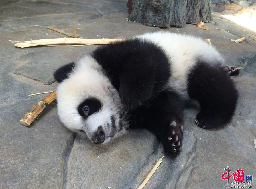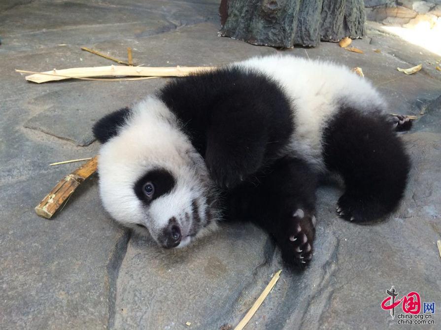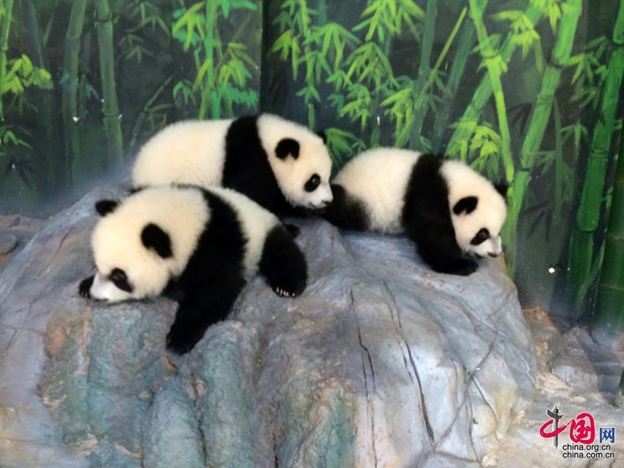 The photo taken on Dec 30, 2014, at the Chimelong Safari Park in Guangzhou, Guangdong province, shows panda triplets born in last July. They are believed to be the only living panda triplets in the world. [China.org.cn]