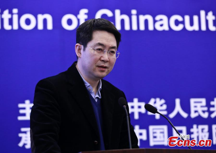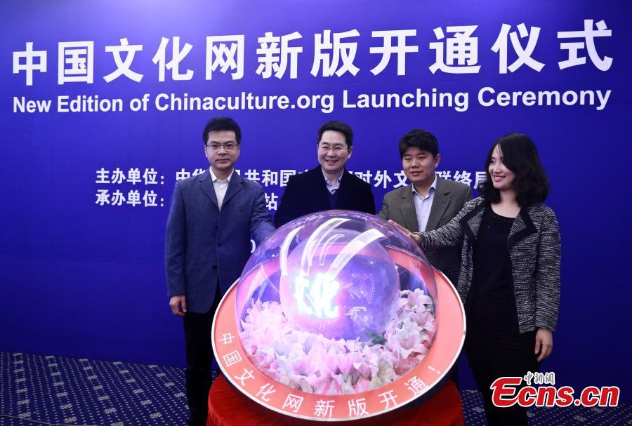Li Liyan (R2), assistant secretary of the Bureau for External Cultural Relations of the Chinese Ministry of Culture and Qu Yingpu (L2), deputy editor-in-chief at China Daily, attend the launching ceremony of Chinaculture.org in Beijing on Jan 13, 2015. Chinaculture.org, an English-language website sponsored by the Ministry of Culture and run by China Daily Website, launched its brand-new edition on Jan 13 in Beijing, aiming at spreading Chinese culture further and wider to the world. The latest revamp marks a milestone for the website as it incorporates the latest trends in Internet development, and is also a starting point to expand new media channels to connect the world to Chinese culture.[Photo: Feng Yongbin / China Daily]
