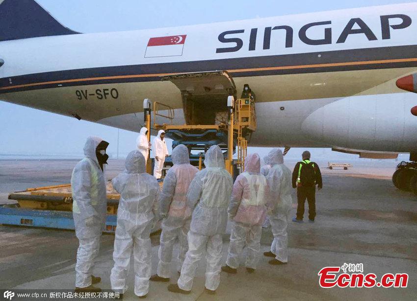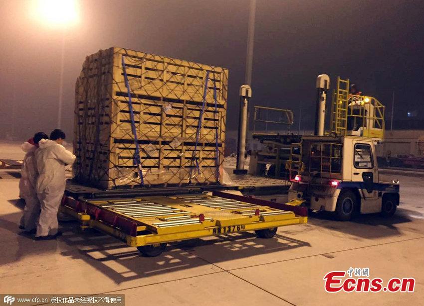 Dorper sheep from Australia arrive at an airport in Urumqi, Northwest China’s Xinjiang Uygur autonomous region, Jan 12, 2015. A livestock company in the autonomous region imported 1,438 Dorper sheep for crossbreeding with local sheep. The transportation cost for each sheep was around 2,000 yuan ($322). [Photo/ CFP]