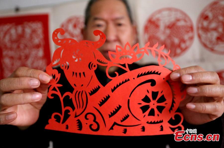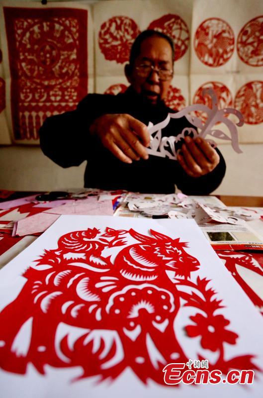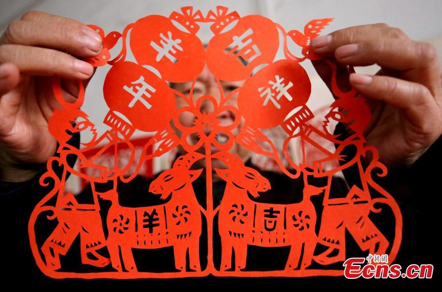 Folk artist makes paper cuts for Year of the Goat(1/5)