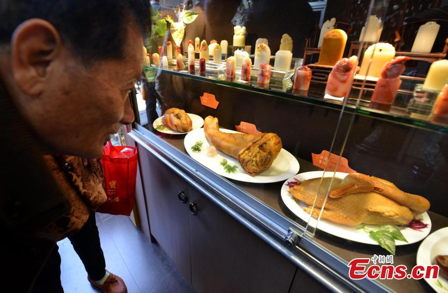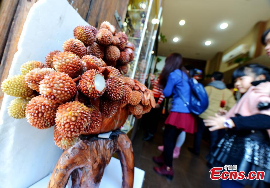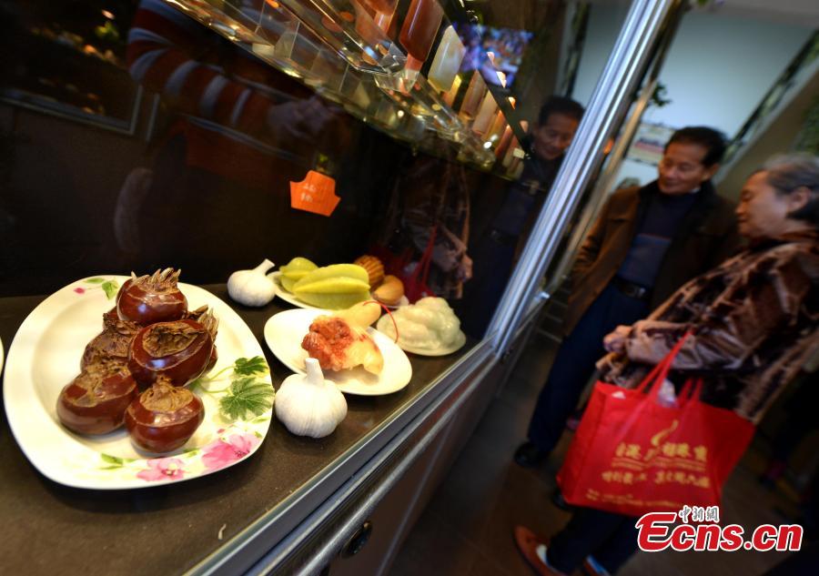 "Delicious dishes" made of stones are on display in Fuzhou, East China’s Fujian province, Jan 16, 2015. [Photo: China News Service/Zhang Bin]